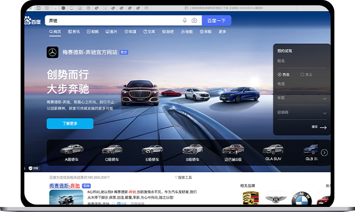 位于百度搜索結(jié)果首位,以超大黃金首屏展示推廣信息