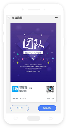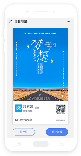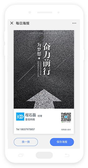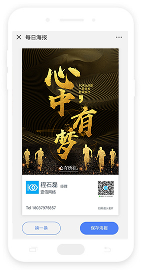 系統內置數十套海報模板 也可自己上傳模板 一鍵分享到朋友圈